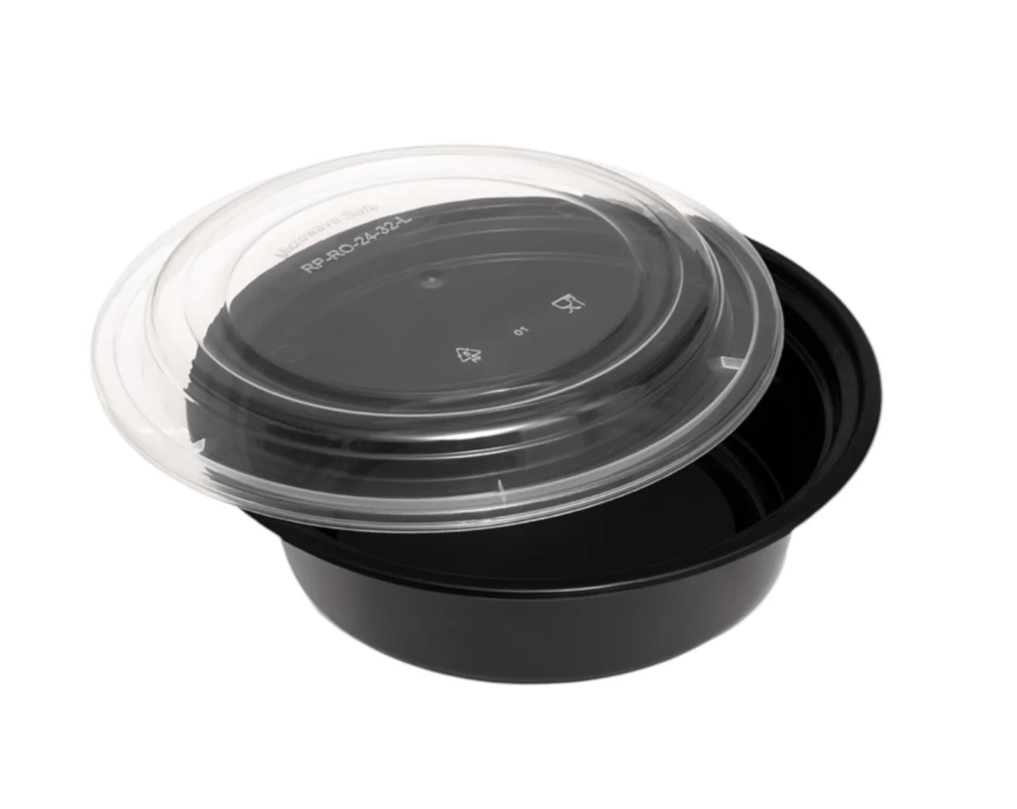 32oz Round Black Microwaveable Container & Clear Lid