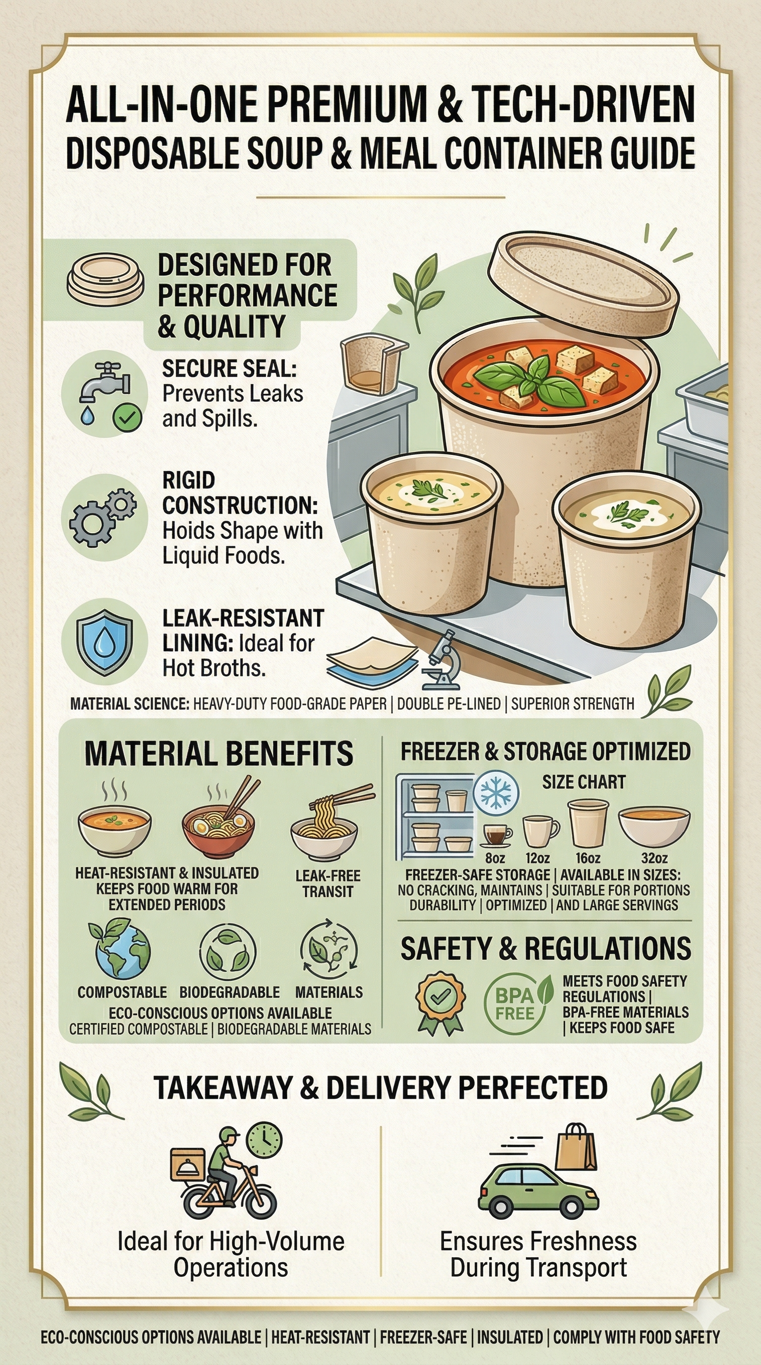 This 26oz Kraft Soup Cup Paper Lid is a durable, environmentally friendly lid for your soup cups. Made from high-quality paper, it provides a secure, leakproof seal for your soups. Its kraft design adds an aesthetic appeal and is also 100% recyclable. Upgrade your soup packaging today!