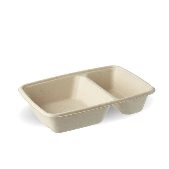The Sabert 2 Compartment Pulp Container Base is a convenient way to pack and transport meals with two separate compartments.