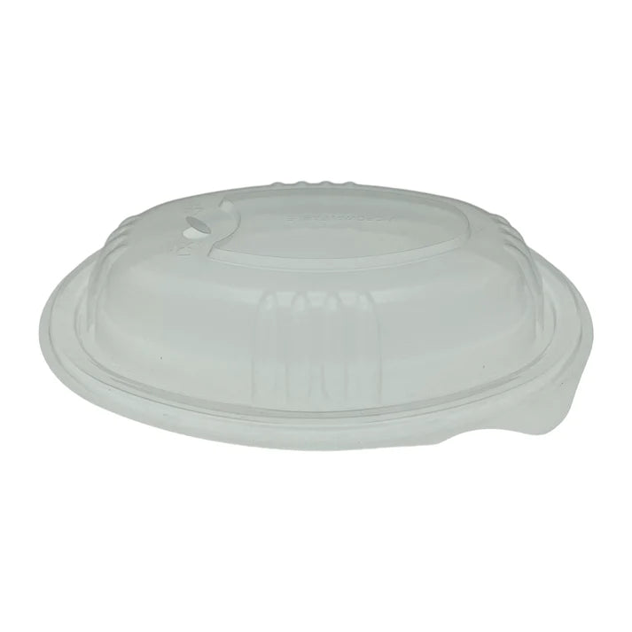 Somoplast 755/754 Oval Clear Microwavable Lids feature a vent for steam release and a strong material that ensures secure fitting, preventing leaks or spillages.